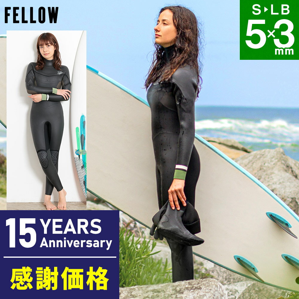 | 【マラソンセール】FELLOW セミドライ 5×3mm ウェットスーツ ロングチェストジップ レディース 冬用 保温 裏起毛 セミドライスーツ スキン ウエットスーツ サーフィン JPSA 日本規格 21F-SD23